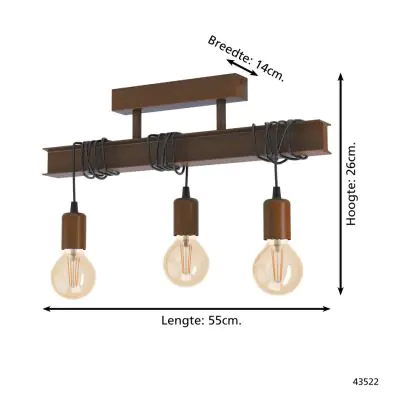 Beschreibung Eglo Deckenleuchte Townshend 4 Stahl Braun | IP20 - Geeignet für 3x E27