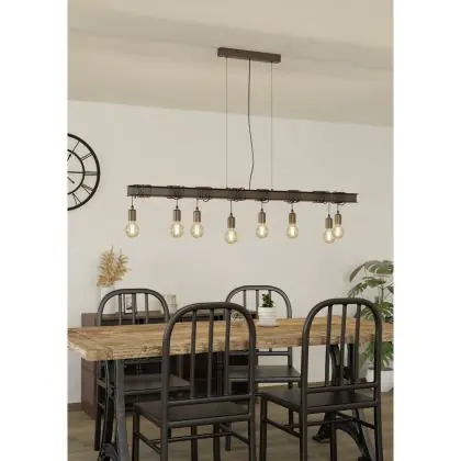 Die Eglo Pendelleuchte Townshend 4 Stahl Braun Schwarz | IP20 - Geeignet für 8x E27 sorgt für eine angenehme Ausleuchtung und punktet durch modernes Design. Diese Leuchte ist speziell zur Montage an der Decke vorgesehen.