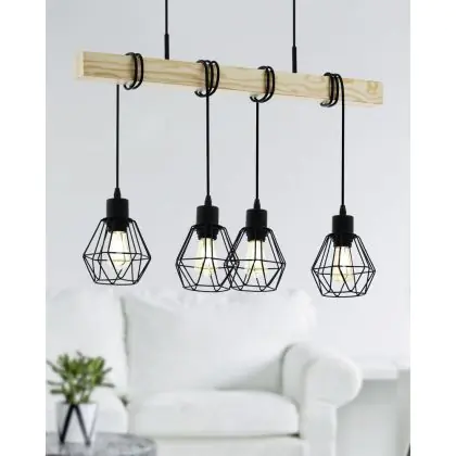 Die Eglo Pendelleuchte Townshend 5 Stahl Holz Schwarz | IP20 - Geeignet für 4x E27 sorgt für eine angenehme Ausleuchtung und punktet durch modernes Design. Diese Leuchte ist speziell zur Montage an der Decke vorgesehen.