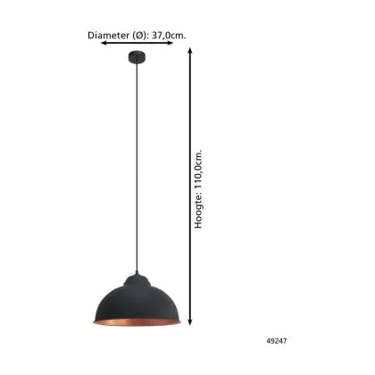 Beschreibung Eglo Pendelleuchte Truro 2 Stahl Schwarz Bernstein | IP20 - Geeignet für 1x E27