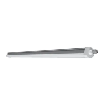 Die LED-Feuchtraumleuchte hat einen niedrigen Energieverbrauch von nur 55 Watt und ersetzt somit herkömmliche Leuchten mit 2x 58 W Fassungen. Aufgrund der höheren Effizienz sparen Sie rund 55 % Energiekosten ein.