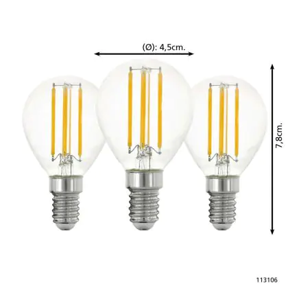 Die Mehrfachpackung 3x Eglo LED Kugel E14 Fadenlampe Klar 21W 806lm - 827 Extra Warmweiß | Ersatz Für 60W ist eine effiziente E14 LED-Lampe mit Retrodesign und der perfekte Ersatz für Ihre konventionellen 60W Lampen mit E14. Zudem strahlt sie Licht in der Farbtemperatur 2700K - Extra Warmweiß aus und punktet durch eine lange Lebensdauer.