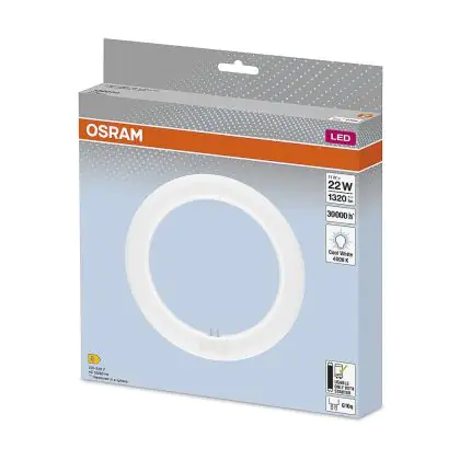 Die Mehrfachpackung 4x Osram LED Röhre T9 Rund (EM/Mains) 11W 1320lm - 840 Kaltweiß | Ersatz Für 22W ist eine effiziente LED-Röhre und der perfekte Ersatz für Ihre konventionelle Leuchtstoffröhre mit 22W und einem G10q (4-Pins). Die Röhre hat eine Länge von 212 mm und einen Durchmesser von 212 mm. Zudem strahlt das Produkt Licht in der Farbtemperatur aus und punktet durch eine lange Lebensdauer.