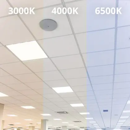 Das LED-Panel kommt mit der Farbtemperatur 4000K - Kaltweiß daher. Als Faustregel gilt: Je niedriger der Kelvinwert, desto gemütlicher wirkt das Licht.