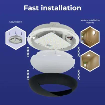 Die Noxion LED-Wand- und Deckenleuchte Pro V2 12/16/20W 2400lm - 830-840-865 CCT | 325mm - IP65 + Augenlid Ring Schwarz ist eine Feuchtraumleuchte. Sie strahlt Licht in der Farbtemperatur 3000K - 4000K - 6000K CCT aus und punktet durch eine lange Lebensdauer. Diese Leuchte ist speziell zur Verwendung in Feuchträumen (Keller, Waschräume, etc.) vorgesehen.