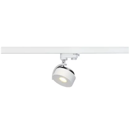 Der SLV Schienenstrahler Kalu 3-Phasen Aluminium Weiß Rund 13W 970lm 95D - 930 Warmweiß | Höchste Farbwiedergabe - Dimmbar ist ein LED-Schienenstrahler, welcher Licht in der Farbtemperatur ausstrahlt und durch eine lange Lebensdauer punktet. Das Produkt ist mit einem LED-Schienensystem kompatibel und kann für unterschiedliche Anwendungsbereiche genutzt werden.