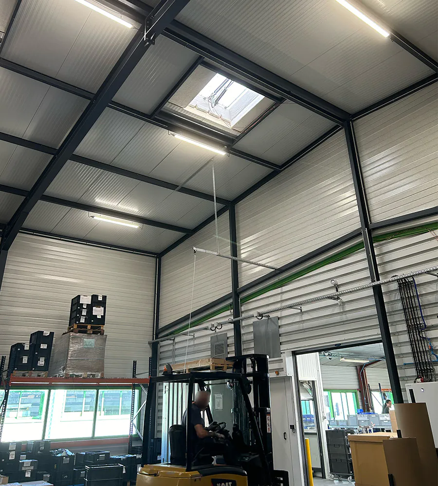 Unser Kunde stellt manuelle und elektrische Trittleitern sowie Aluminiumrampen für alle Arten von Fahrzeugen her. Die größte Herausforderung bestand darin, eine Beleuchtung zu liefern, die sowohl für die Arbeits- als auch Lagerbereiche ideal ist. Sie muss also leistungsstark als auch gleichmäßig sein.